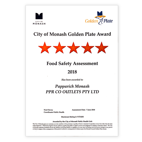 5 Star Food Safety Award from Manningham Council